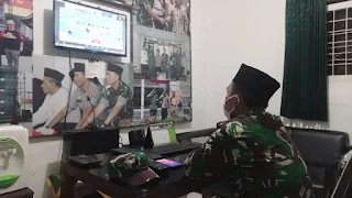 Pasi Ren Progar Kodim 0410/KBL Kapten Inf Sanusi mengikuti acara Istighosah Kubro PCNU Kota Bandarlampung melalui zoom meeting dari ruang Media Center Kodim 0410/KBL Jalan Imam Bonjol, Kelurahan Gunung Agung, Kecamatan Langkapura, Kota Bandarlampung, Kamis malam (05/08/2021)