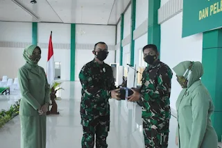 Komandan Kodim 0410/KBL Kolonel Inf Romas Herlandes SE.,M.Si.,MM, didampingi Ketua Persit KCK Cabang XXX Kodim 0410/KBL Ny. Esa Romas Herlandes, menghadiri acara serah terima jabatan (Sertijab) Dandim 0424/Tanggamus serta Tradisi penerimaan Perwira Baru dan pelepasan Pejabat Korem 043/Gatam, bertempat di Makorem 043/Gatam jalan Teuku Umar Kedaton, Kota Bandarlampung, Sabtu (04/9/2021)