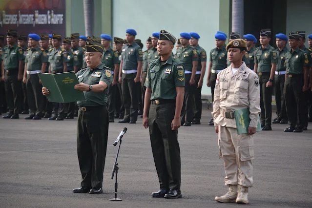 Prajurit dan PNS Korem 043/Gatam beserta Jajaran mengikuti upacara bulanan, sebagai Inspektur Upacara (Irup) Kasrem 043/Gatam Kolonel Inf Enjang, S.I.P., M.Han., dan Komandan Upacara (Danup) Mayor Ckm dr. Yogi Mahery, SP.B., M.M., bertempat di lapangan upacara Makorem 043/Gatam Jl. Teuku Umar Penengahan Kedaton, Kota Bandarlampung. Senin (18/03/2024).