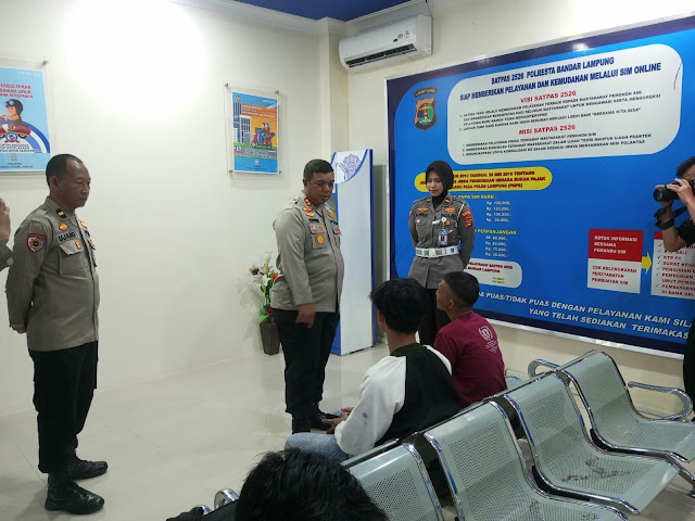 Waka Polresta Bandarlampung AKBP Erwin Irawan, S.I.K, meninjau langsung ruang pelayanan publik yang ada di Mapolres setempat. Hal ini bertujuan untuk memastikan bahwa fasilitas dan layanan yang diberikan kepada masyarakat sudah memenuhi standar yang ditetapkan.